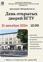 Учреждение образования "Белорусский государственный технологический университет" приглашает на День открытых дверей 21.12.2024