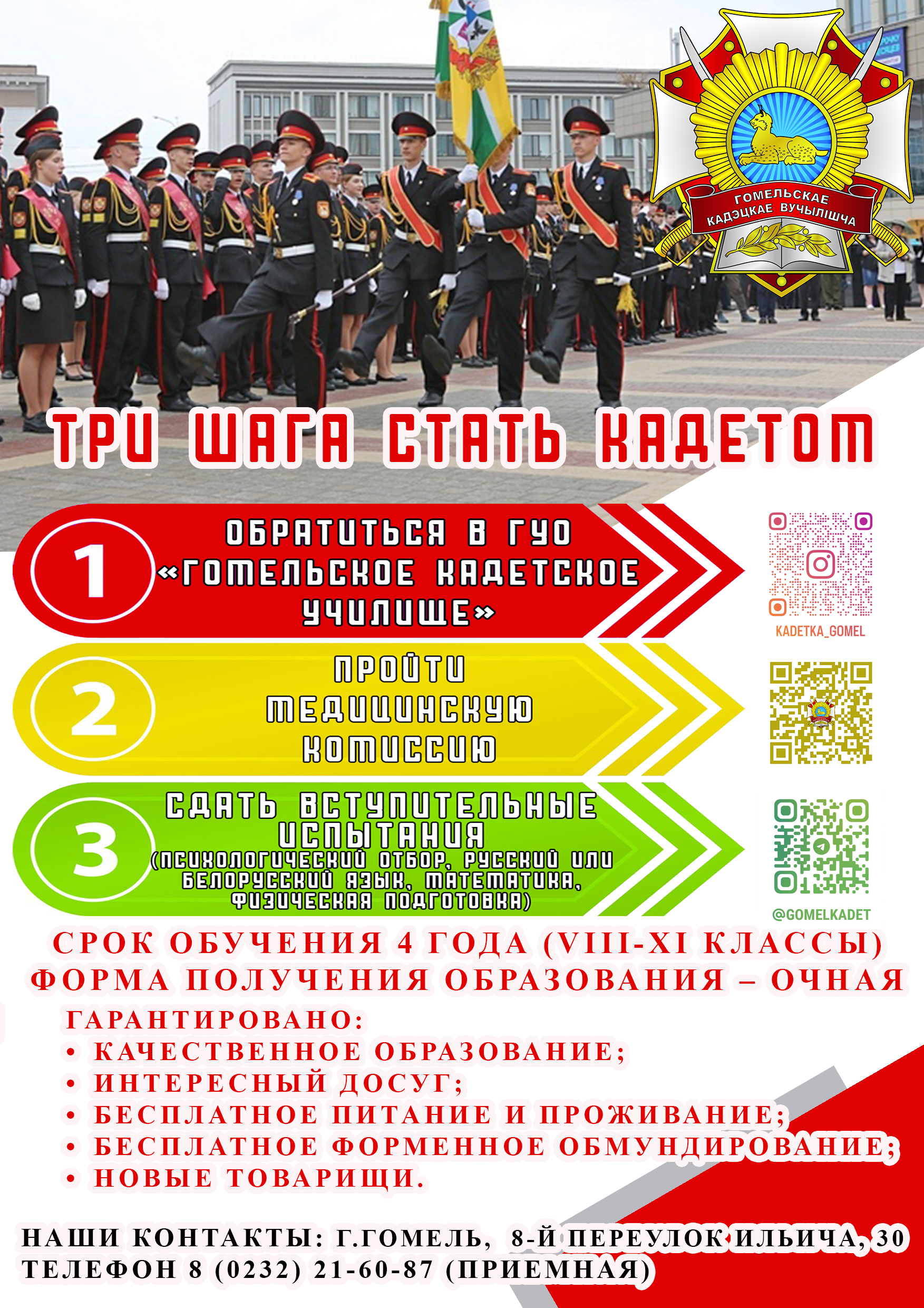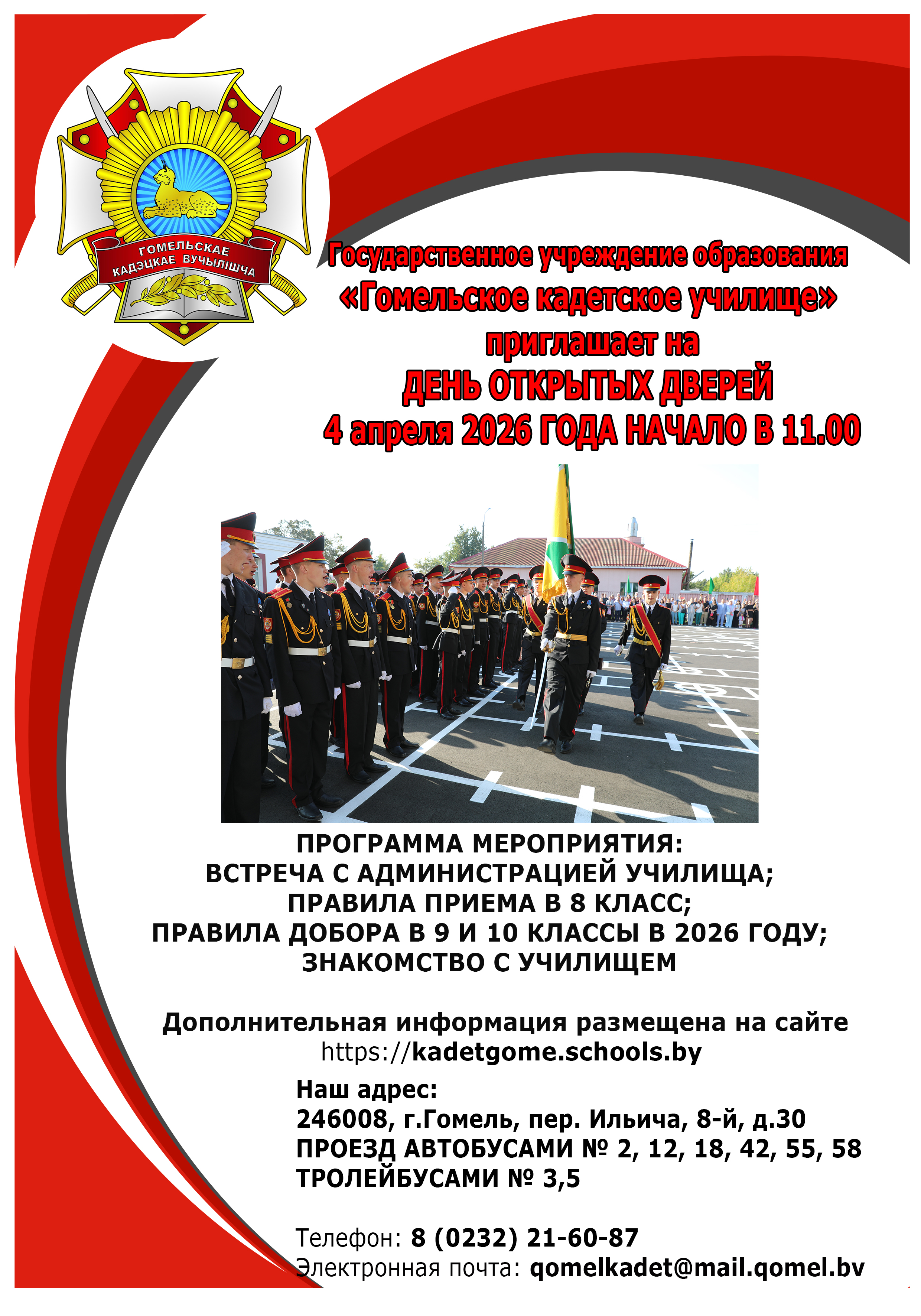 ГУО "Гомельское кадетское училище" приглашает на день открытых дверей 04.04.2026